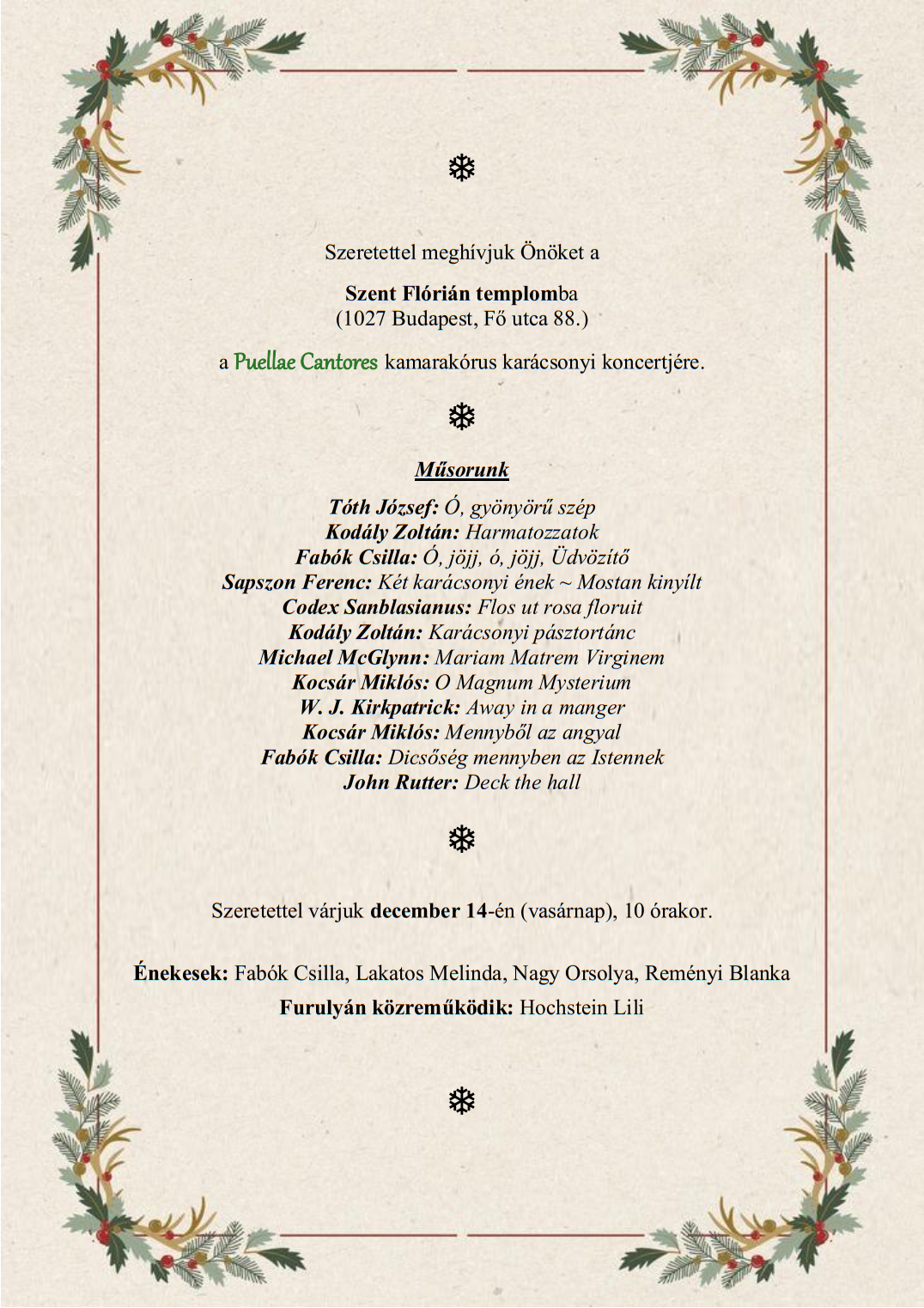 Kedves Testvéreinknek áldott vasárnapot és békés karácsonyi készületet kívánunk az új hétre!