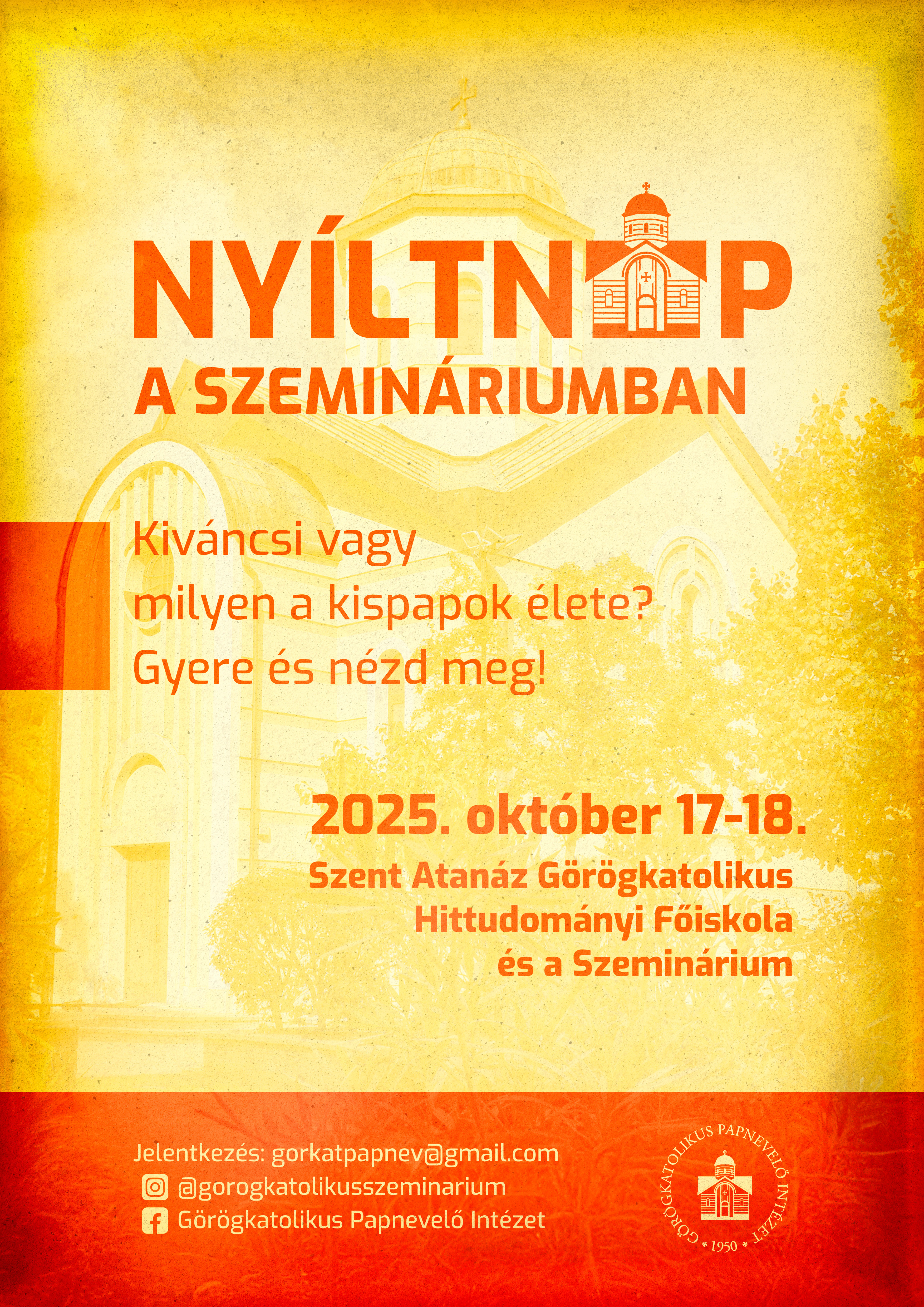A nyíregyházi Papnevelő Intézet és a Főiskola nyílt napokat tart október 17-18-án, amikor személyes találkozásra várják a papság és a teológia iránt érdeklődő fiatalokat. A plakát kattintásra megnyílik: